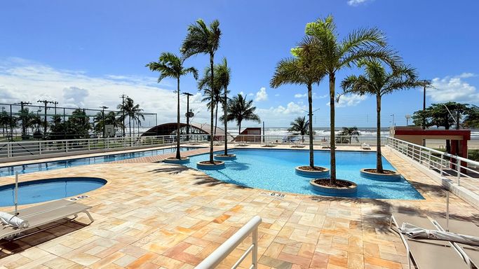 Ótimo apartamento, andar alto, com 2 dormitórios sendo uma suíte, sala 2 ambientes com ar-condicionado, cozinha americana, banheiro social, área de serviço, ampla sacada com vista para o mar, 2 vagas de garagem cobertas. Condomínio com piscina adulto e infantil, salão de festas, salão de jogos adulto e tenn, brinquedoteca, sauna, academia, quadra poliesportiva, serviço de praia, portaria 24 horas. Agende sua visita! A Francisco Alexandre Imóveis é uma empresa especializada na comercialização de imóveis, com uma equipe altamente qualificada, além de um sistema de gestão que acompanha toda a fase de negociação, auxiliando assim na realização do seu sonho!