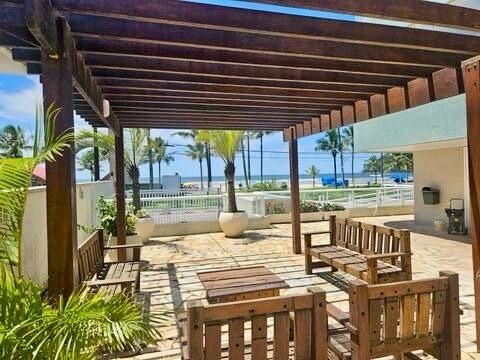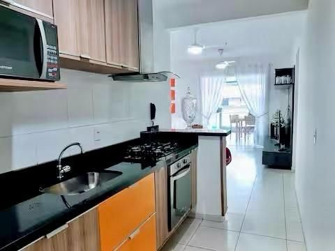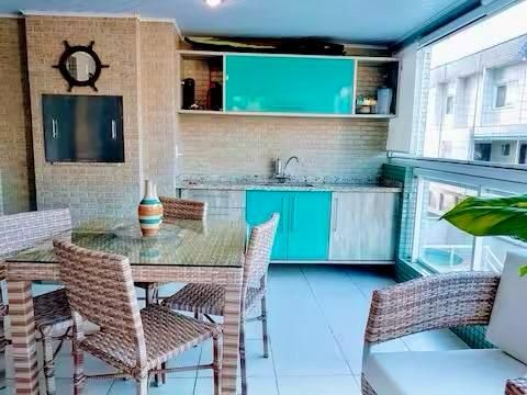 Apartamento frente ao mar com 96,54m² de área útil, com 2 dormitórios, sendo 1 suíte, banheiro social, living para 2 ambientes, cozinha americana com armários planejados, varanda gourmet com fechamento de sacada, lavanderia e 2 vagas de garagem.