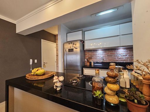 Apartamento com 2 dormitórios sendo 1 suíte, living 2 ambientes, 1 banheiro social, cozinha com ilha integrada com copa, sacada com área gourmet e 1 vaga de garagem.