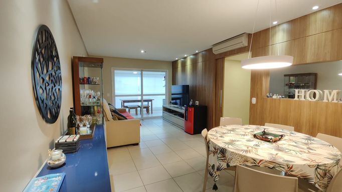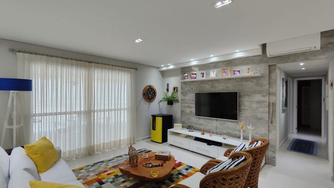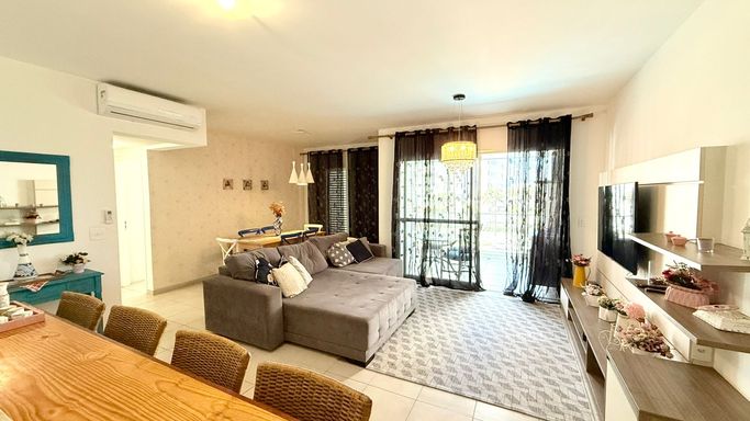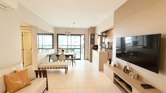 Excelente apartamento de 2 quartos, sendo um deles suíte, banheiro social, sistema de áudio integrado, automação, fechadura digital, câmeras de segurança, varanda integrada à sala, elegantemente mobiliado.