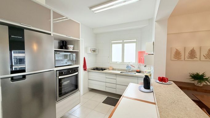 Apartamento de alto padrão com fino acabamento, 3 dormitórios sendo 2 suítes, living para 2 ambientes, varanda gourmet com churrasqueira, cozinha tipo americana planejada e equipada, 1 banheiros sociais, lavanderia e 2 vagas de garagem cobertas e demarcadas.