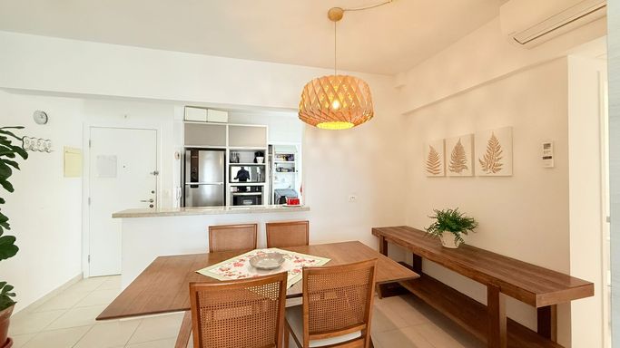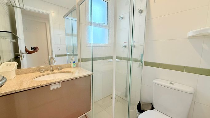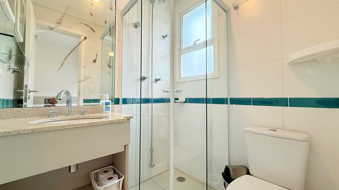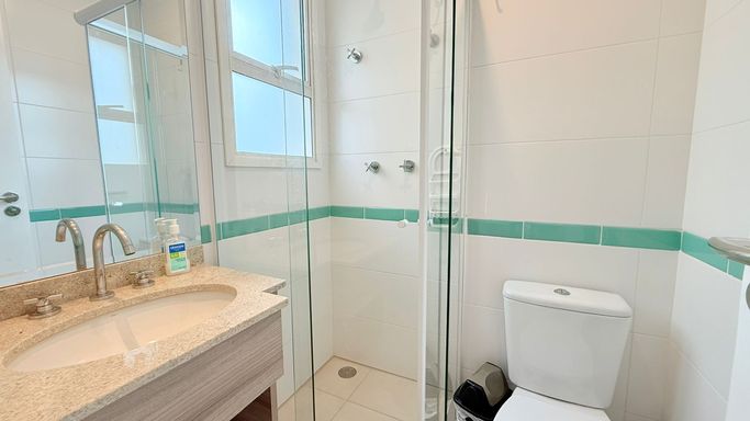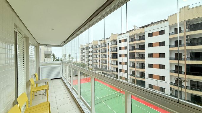 O condomínio oferece completa infraestrutura de lazer e conforto, com serviço de praia, piscina coberta e climatizada, piscina adulto com raia de 25 metros, piscina infantil, piscina de biribol, solarium, deck molhado, quadra de tênis, quadra poliesportiva, fitness center, espaço massagem, sauna e salão de festas com espaço gourmet. Ideal para quem busca conforto, lazer e qualidade de vida em um só lugar.