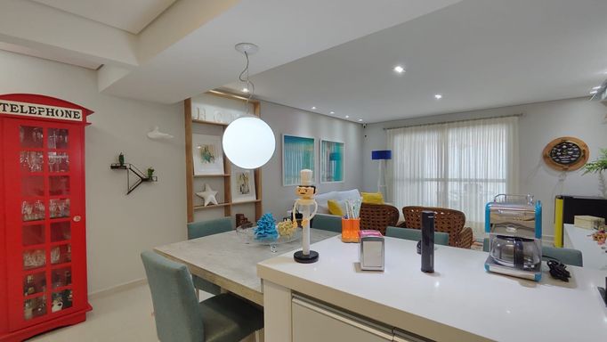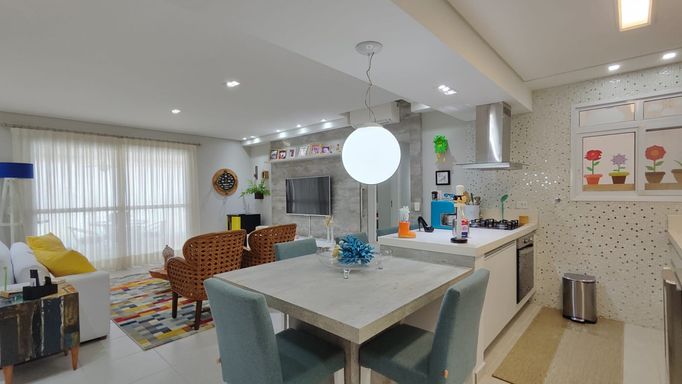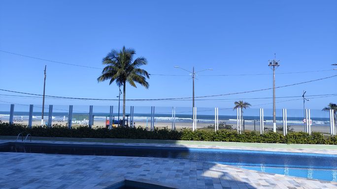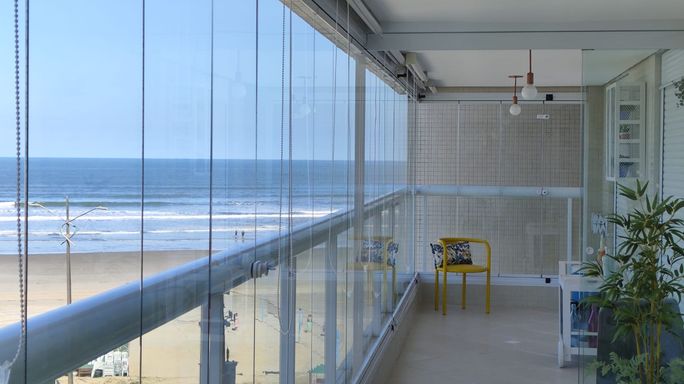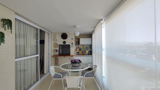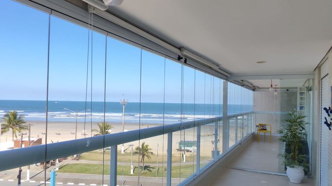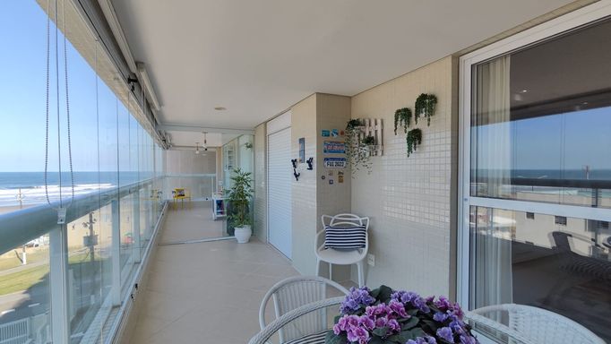 Apartamento com 118 m² de área útil e 159 m² de área total, localizado em edifício em frente à praia. O imóvel possui 3 dormitórios, sendo 1 suíte, além de banheiro social, sala ampla para dois ambientes, cozinha americana, área de serviço e varanda gourmet com churrasqueira, já com fechamento em vidro. Conta ainda com 2 vagas de garagem cobertas.