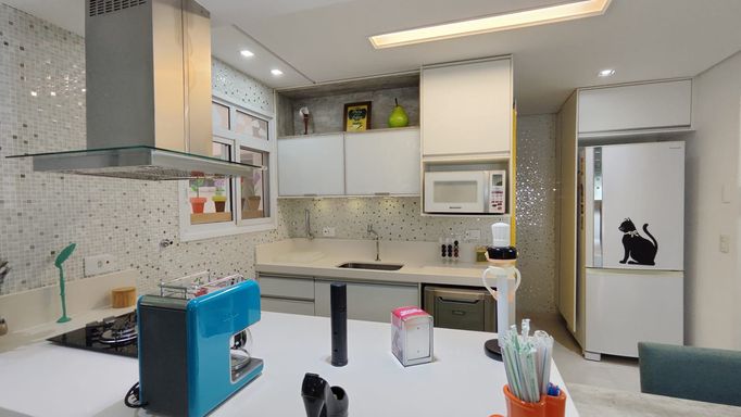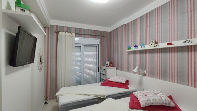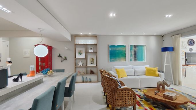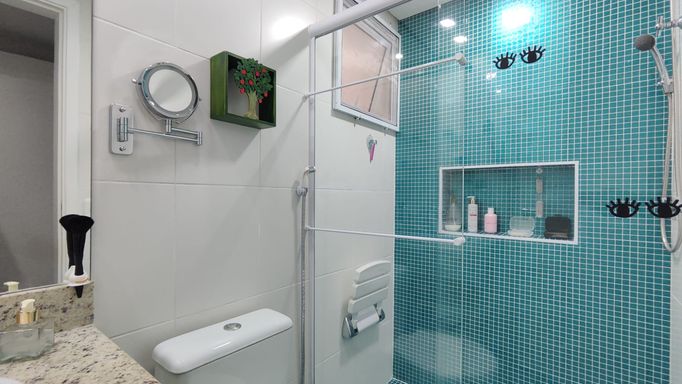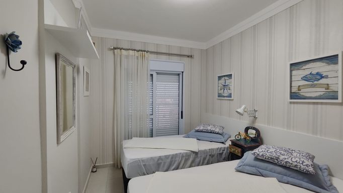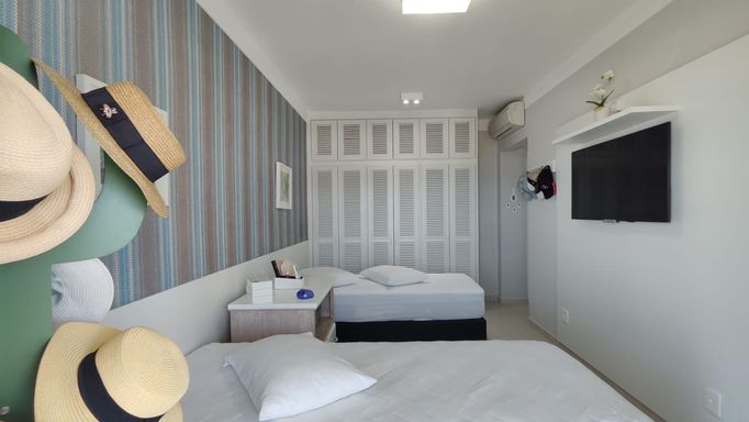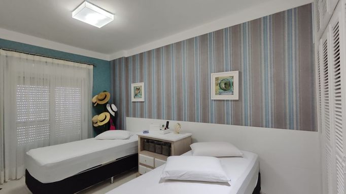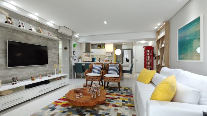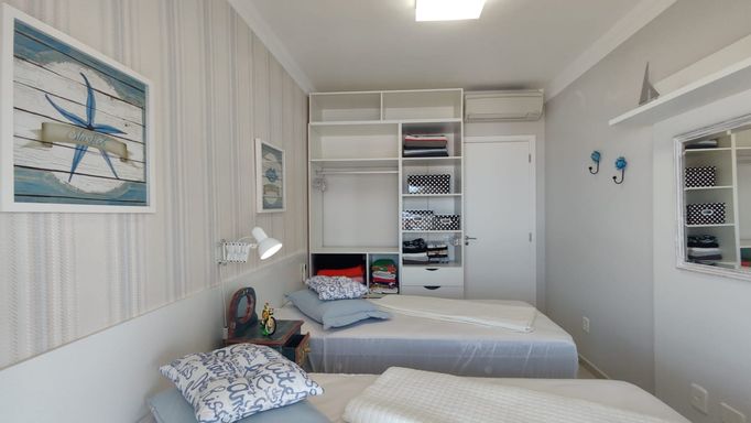 O apartamento está totalmente mobiliado e finamente decorado, equipado com ar-condicionado nos três dormitórios e na sala, oferecendo conforto e praticidade para uso imediato.