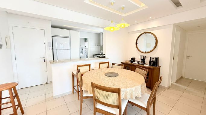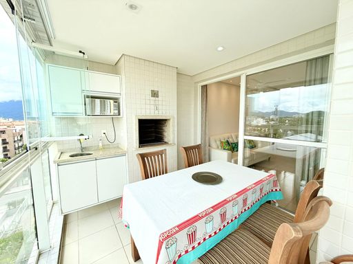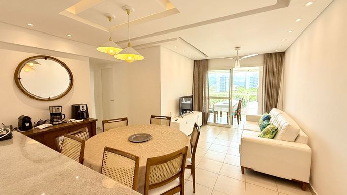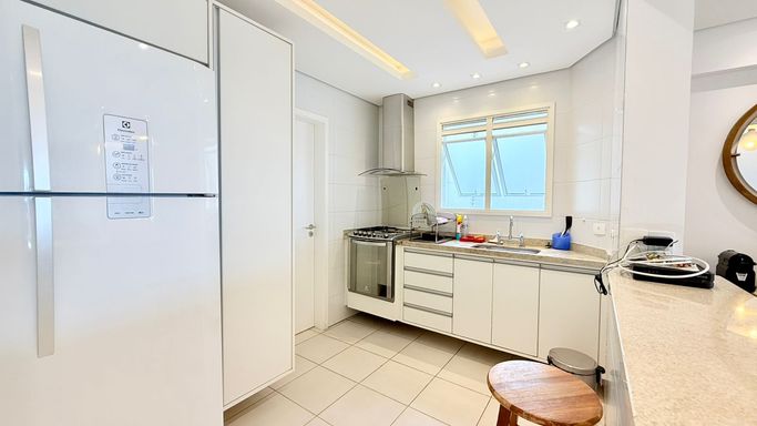 Apartamento pé na areia, com vista para o mar, 3 dormitórios, sendo 1 suíte e 2 quartos, living para 2 ambientes, varanda gourmet com churrasqueira, cozinha tipo americana planejada e equipada, 1 banheiro social, lavanderia e 2 vagas de garagem.