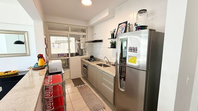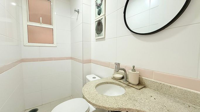 O condomínio oferece completa infraestrutura de lazer e conforto, com serviço de praia, piscina coberta e climatizada, piscina adulto com raia de 25 metros, piscina infantil, piscina de biribol, solarium, deck molhado, quadra de tênis, quadra poliesportiva, fitness center, espaço massagem, sauna e salão de festas com espaço gourmet. Ideal para quem busca conforto, lazer e qualidade de vida em um só lugar.