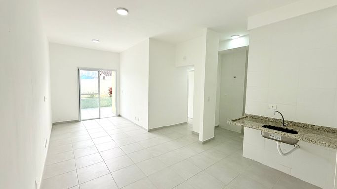 Apartamento térreo com quintal privativo, com 2 dormitórios sendo uma suíte, cozinha funcional, banheiro social, sala 2 ambientes, area de serviço e um quintal privativo, proporcionando mais espaço e bem-estar.