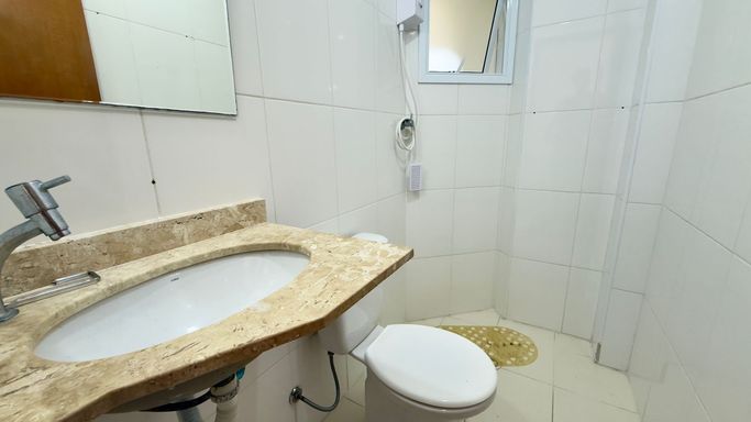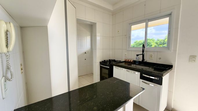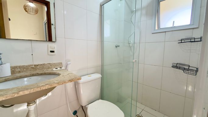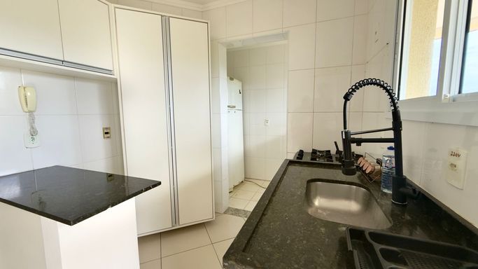 O condomínio oferece zeladoria, portaria 24 horas, câmeras de vigilância, piscina, brinquedoteca e salão de jogos.