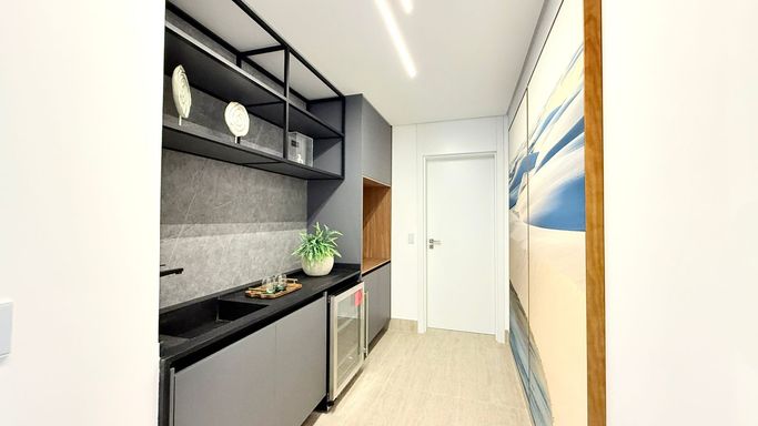 O imóvel possui acabamento de altíssimo padrão, com marcenaria da Florense e mobiliário solto da Breton, referências em qualidade e design.