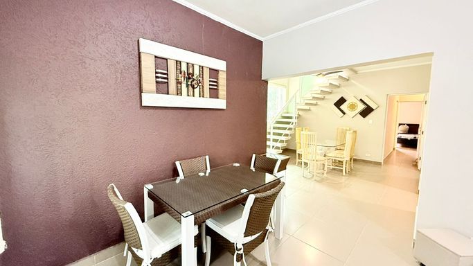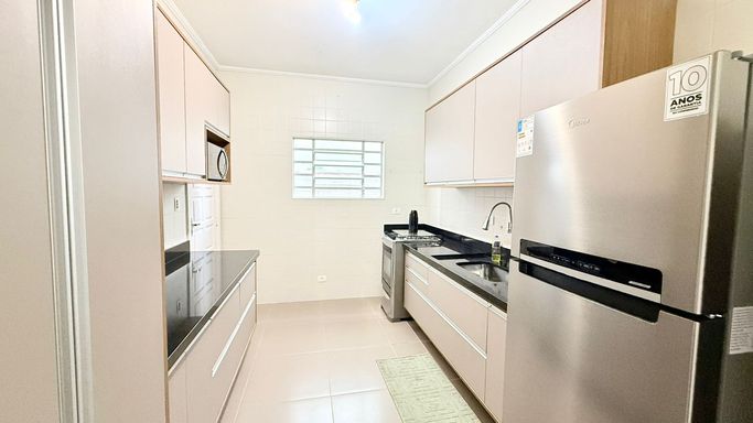 O imóvel conta com 3 dormitórios, sendo 1 suíte, além de 2 banheiros sociais. Possui sala para dois ambientes integrada à sala de jantar, proporcionando um ambiente aconchegante para receber família e amigos. A cozinha com móveis planejados garante praticidade e organização no dia a dia.