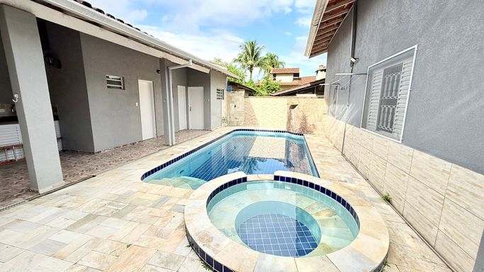 Na área externa, o imóvel oferece um excelente espaço de lazer com churrasqueira gourmet, piscina com hidromassagem e um quintal agradável para momentos de descanso e confraternização.