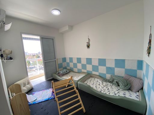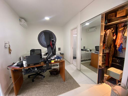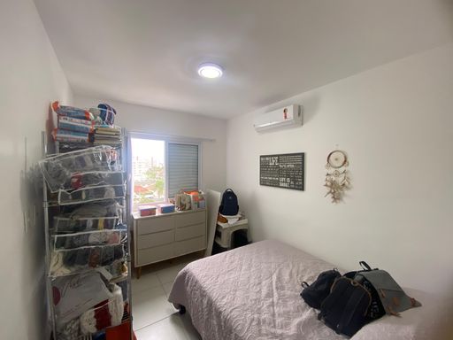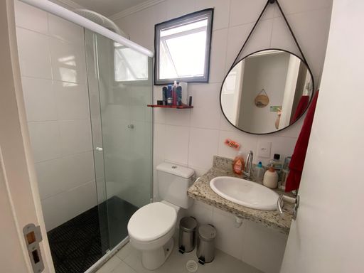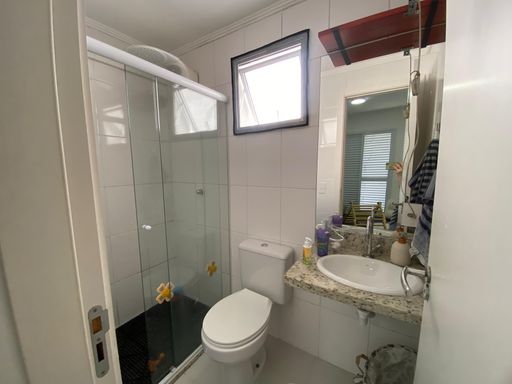 O imóvel possui box blindex e espelhos nos três banheiros, além de ar-condicionado instalado nos três dormitórios e na sala, assegurando conforto térmico em todos os ambientes.
