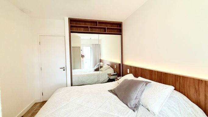 A unidade dispõe de 02 vagas de garagem cobertas e é comercializada semi-mobiliada.