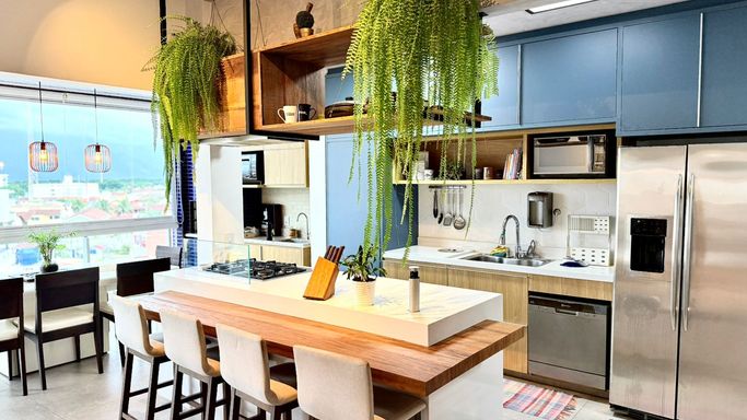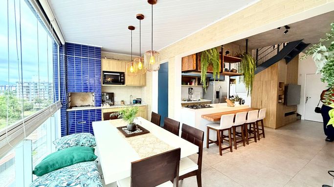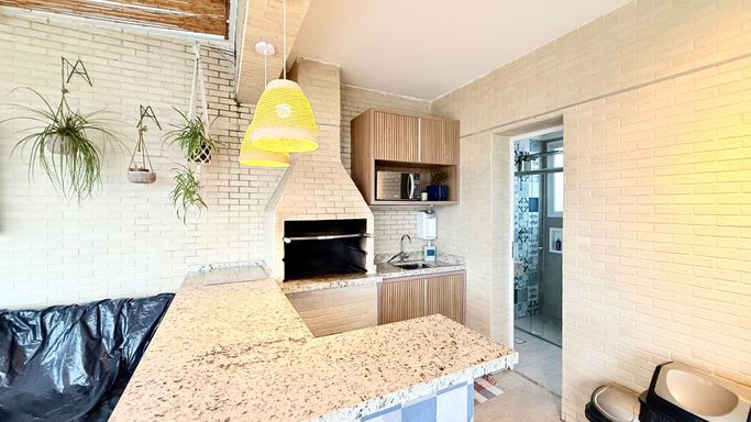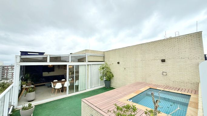 A cobertura conta com 04 dormitórios, sendo 02 suítes, proporcionando conforto e privacidade para toda a família. Possui ainda 02 banheiros sociais, cozinha funcional, sala ampla integrada à varanda e excelente iluminação natural.