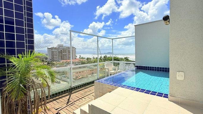 Desfrute de todo o conforto e estilo nesta incrível cobertura com vista privilegiada para o mar. O imóvel conta com 3 dormitórios, sendo 2 suítes, sala ampla para dois ambientes, cozinha americana moderna e funcional, além de 2 banheiros sociais.