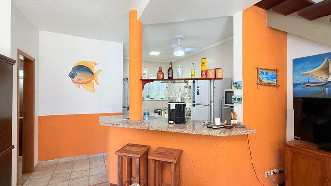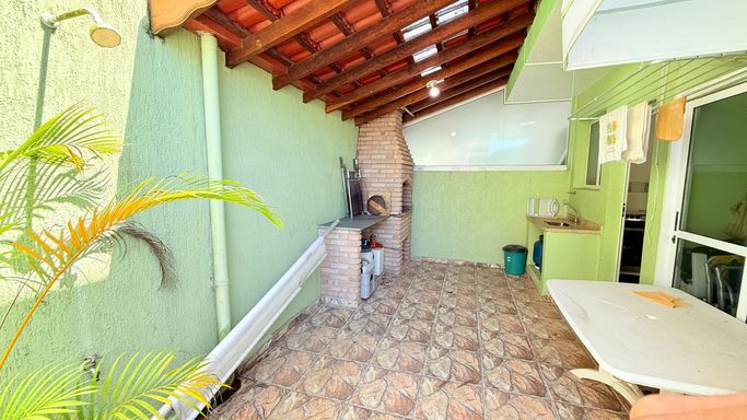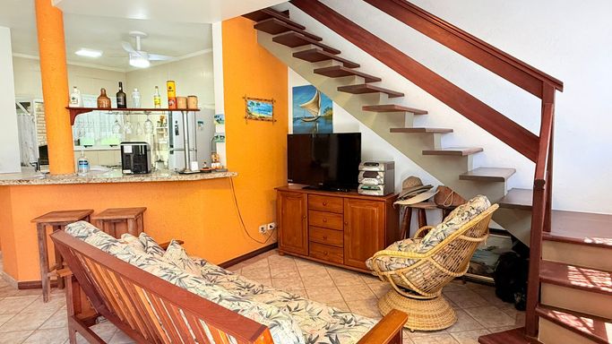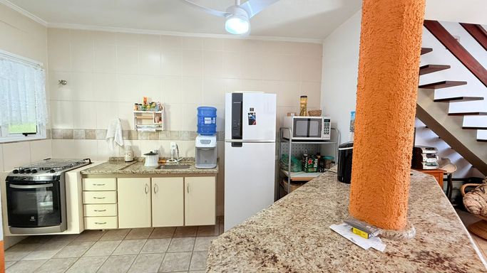 Ótimo Sobrado mobiliado em Vilagio com 1 suítes, sala 2 ambientes, cozinha americana com armários, banheiro social, lavanderia, quintal privativo com churrasqueira, 2 vagas de garagem, 50 metros da praia. Agende sua visita!