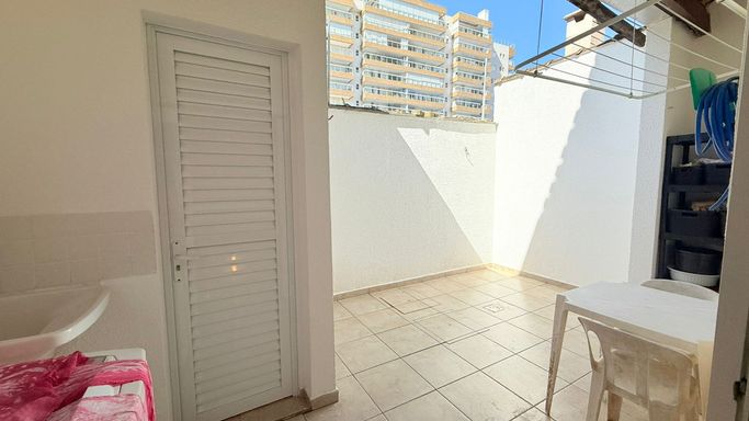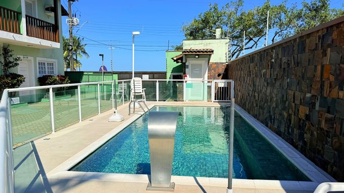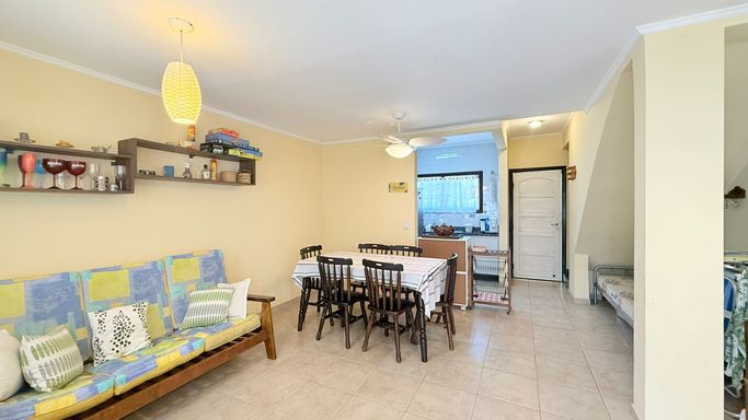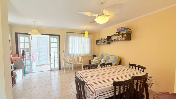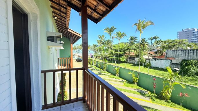 Lindo sobrado em condomínio fechado Frente Mar, vista para o mar, 2 suítes, sala 2 ambientes, cozinha americana, banheiro social, lavanderia, 1 vaga de garagem. Condomínio com piscina coletiva. Agende já sua visita!