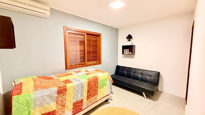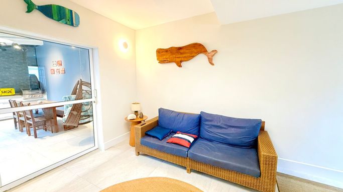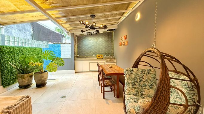 Destaque para o amplo quintal privativo, com churrasqueira a gás em aço inox, ideal para momentos de lazer e confraternização.