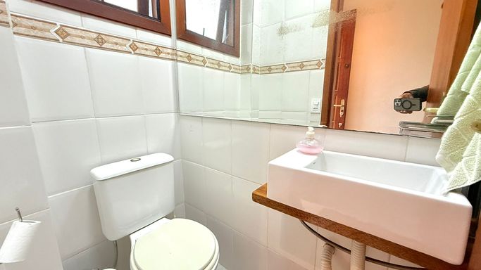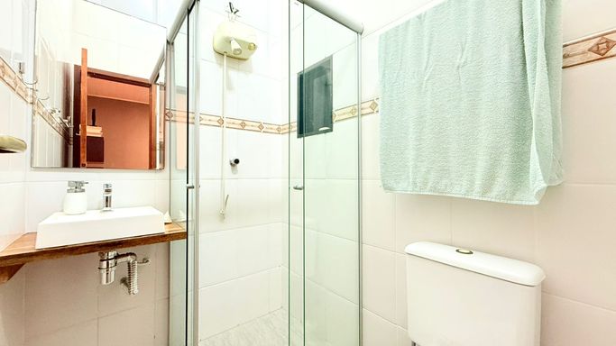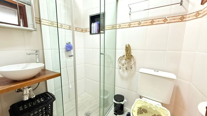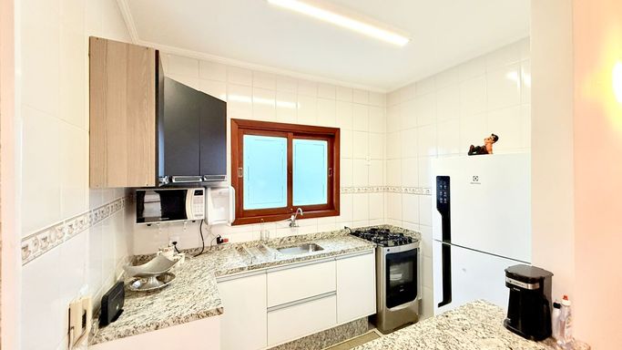 Conta com 2 suítes, sala ampla para dois ambientes, cozinha americana planejada com armários, lavabo e lavanderia.
