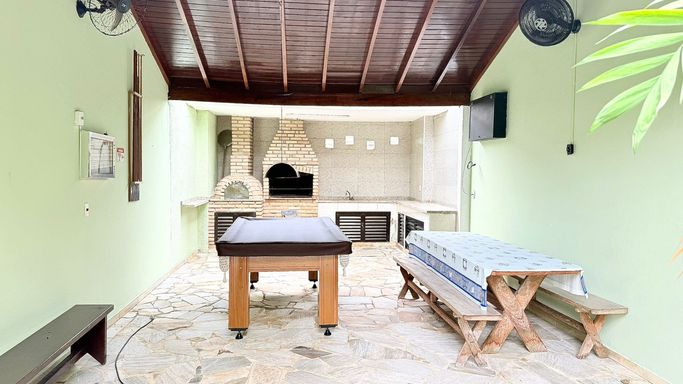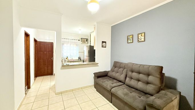 O imóvel possui 2 dormitórios com vista para o mar, proporcionando uma vista privilegiada e muita iluminação natural. Conta também com sala ampla para dois ambientes, perfeita para momentos de convivência, cozinha americana integrada, 2 banheiros sociais e quintal privativo com churrasqueira e espaço gourmet, ideal para receber amigos e familiares.