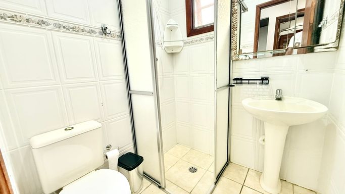 O condomínio oferece um ambiente muito agradável, cercado por muito verde, flores e árvores, criando um espaço tranquilo e acolhedor.