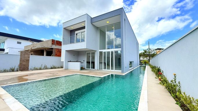 Linda casa de alto padrão em Condomínio Fechado ''Frente ao Mar', 4 suítes, sendo 1 suíte master com closet e banheira, sala 2 ambientes, cozinha tradicional, equipada e planejada com despensa, banheiro social, área de serviço, espaço gourmet com churrasqueira, amplo quintal privativo com piscina e 4 vagas de garagem. Ótima localização, próximo supermercados, lojas e serviços. Estuda proposta e condições de pagamento. A Francisco Alexandre Imóveis é uma empresa especializada na comercialização de imóveis, com uma equipe altamente qualificada, além de um sistema de gestão que acompanha toda a fase de negociação, auxiliando assim na realização do seu sonho!