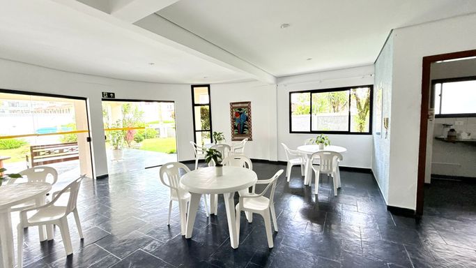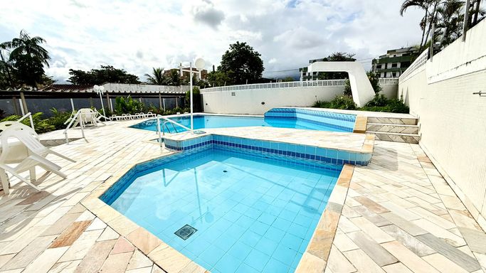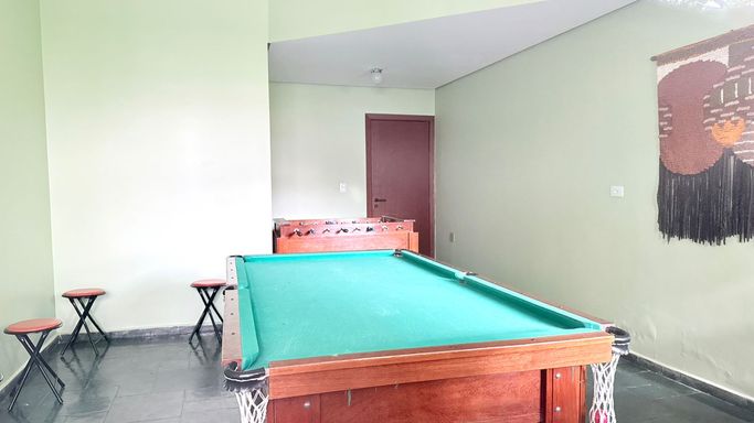 Condomínio oferece piscina adulto e infantil, salão de festas e sala de jogos.
