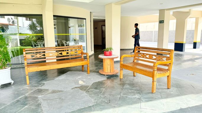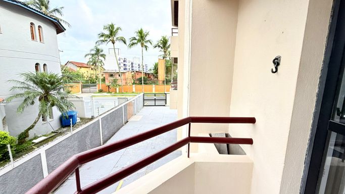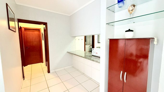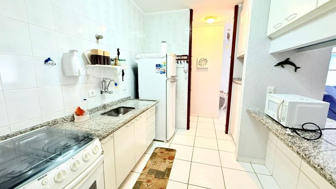 uma sala ampla, banheiro social, cozinha americana, area de serviço e uma ampla sacada.