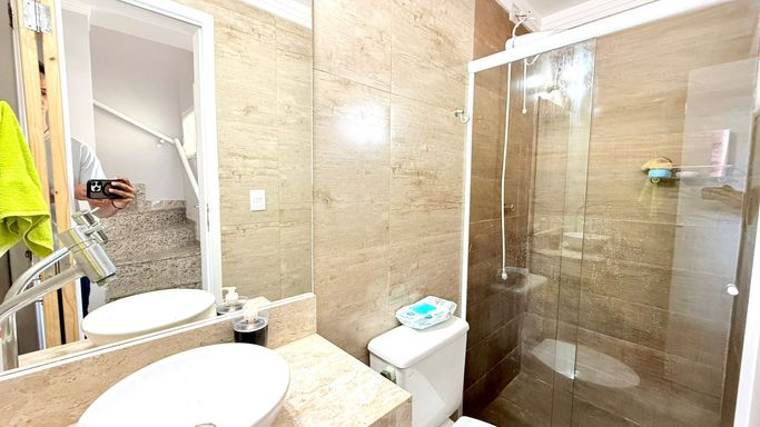 Lindo Village apenas a 100 metros da praia com 2 dormitórios, 2 banheiros sociais, sala 2 ambientes, cozinha americana, amplo quintal privativo com churrasqueira e espaço Gourmet, 1 vaga de garagem. Condomínio completo com piscina, sauna, academia, salão de festas e salão de jogos. Agende já sua visita!